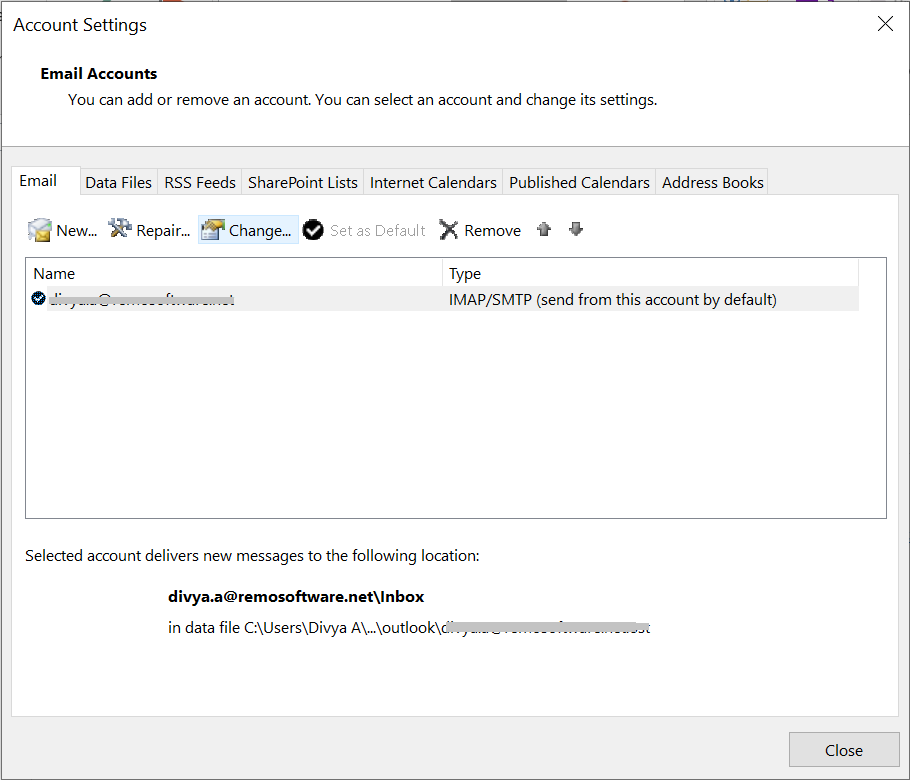 - Na janela Configurações da conta, clique em Change