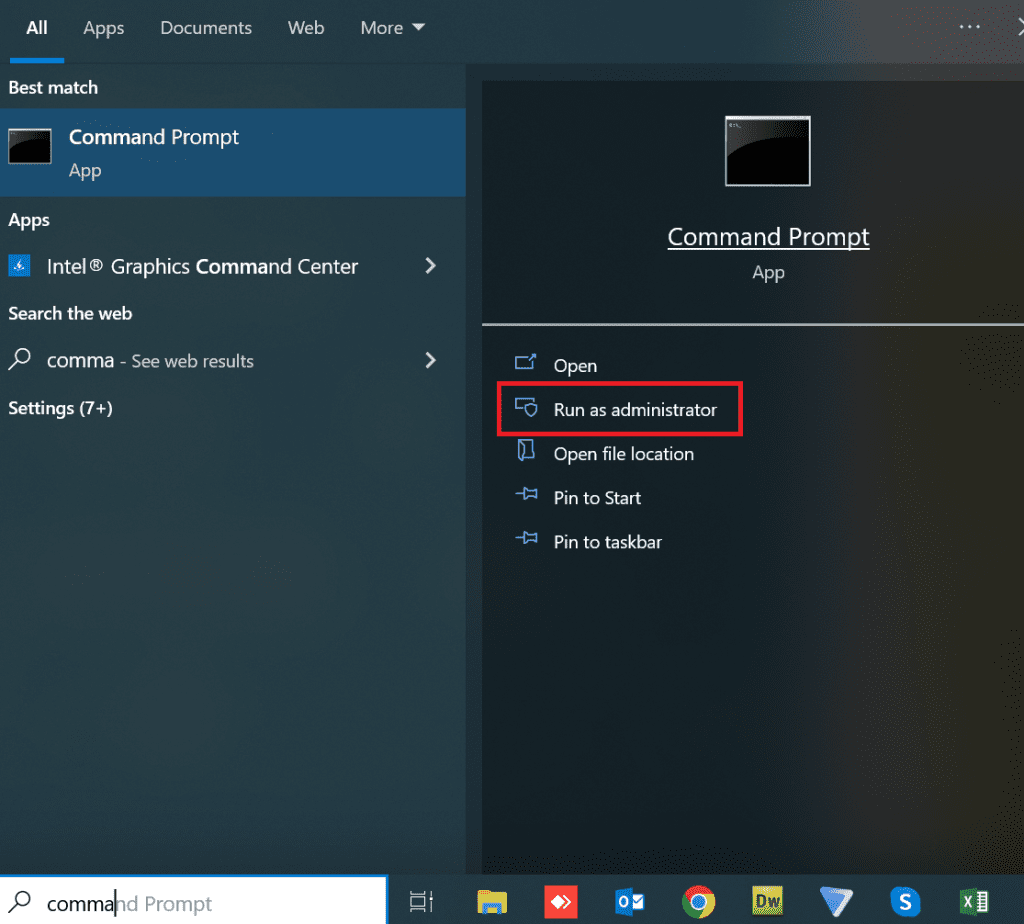 - Clique com o botão direito do mouse no command prompt e escolha Run as Administrator.