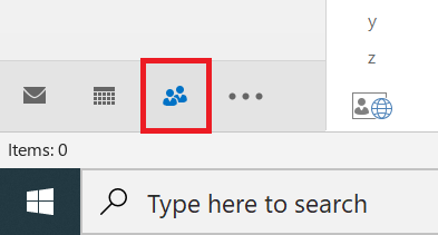 - Abra o Outlook e clique emContacts ou o ícone Pessoas, dependendo da versão do Outlook em uso.